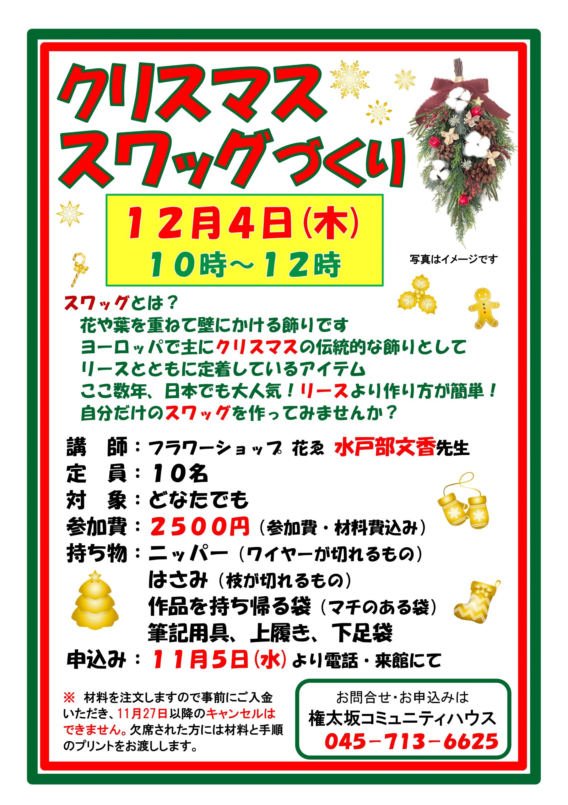クリスマススワッグづくり
